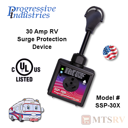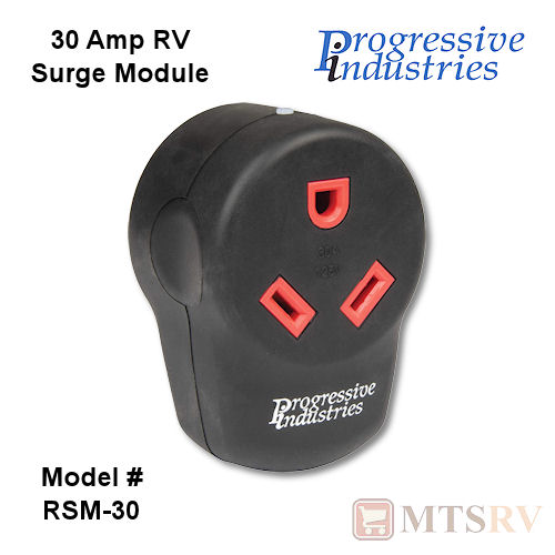 This 30A Portable Surge Protector Module, Model # RSM-30, is a 30 amp surge protector module that protects against damaging low and high voltage levels and power surges inside your RV. It contains a surge protection indicator light that lights green when depleted. Brand new, in stock and ready to ship.