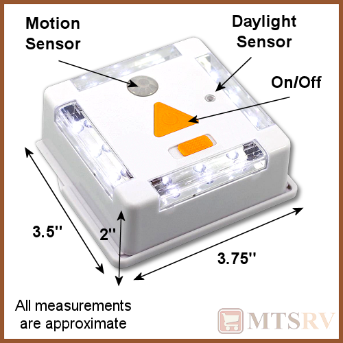 The 12 LED TriLynx Lite is compact, versatile, and easy to use. Twelve bright and powerful LED bulbs provide 90-100 degrees of hands-free illumination. Like all TriLynx products, installation is easy: Four strong magnets attach the light directly to metal surfaces, while its signature Slide N' Lock plate and mounting bracket secures the light on most other surfaces and when in motion. At approximately 4" x 3" x 2", the 12 Light LED Light with Motion Sensor is compact and versatile, and comes with three AA Alkaline batteries and a 12 month warranty.