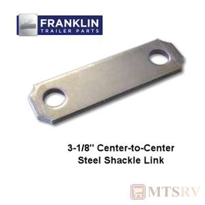 A trailer shackle link, also called a shackle strap, helps connect a double-eye leaf spring to the rear hanger or equalizer on trailer suspension systems. Shackling the 2 components together allows the necessary pivot of the springs. This specific unit, Model #1SS, measures 3-1/8" from center-of-hole to center-of-hole. Brand new, in stock and ready to ship.