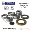 The Franklin model BK10 Replacement Bearing Kit (1-1/4" x 1-3/4") comes with both 15123 and 25580 bearings, both the inner and outer race, both GS11 and GS15 grease seals, a cotter pin, a rubber plug and a lube dust cap. It is made to replace the bearings in the following hubs/drums: 655RX, 65512D, and 55512D. Brand new, in stock and ready to ship.